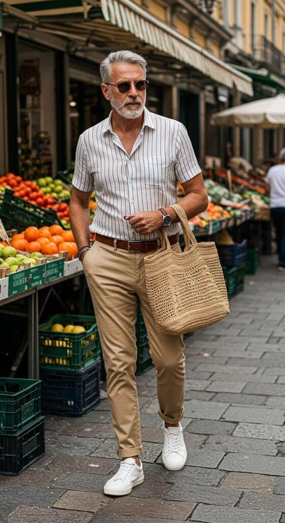 적당히 자유로운 분위기에서 예의를 차리려면 셔츠에 팬츠를 조합하는 것도 좋은 선택입니다. 다만 너무 통이 좁거나 짧은 것, 지나치게 통이 넓은 것을 골라서는 안 되며 적당한 체모 관리를 하시는 것이 좋습니다. 소재 또한 데님이나 운동복 재질보다는 치노나 슬랙스 스타일의 면 소재를 선택하는 것이 좋습니다. 신발도 샌들이 아닌 패브릭이나 통풍 소재의 로퍼를 매치하는 것을 추천해 드립니다.