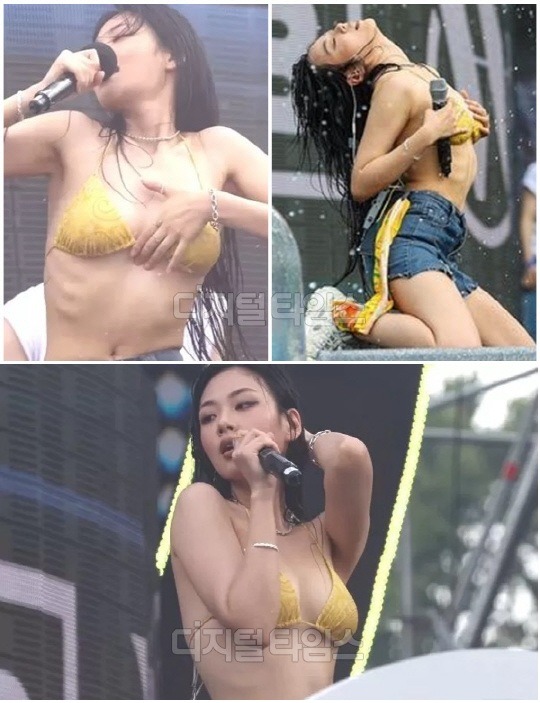그날도 패치를 붙였지만 옷이 가슴 밑 부분이 절개된 디자인이었고, 인터뷰 도중 점점 올라가면서 언더붑 의상이 됐다는 겁니다.